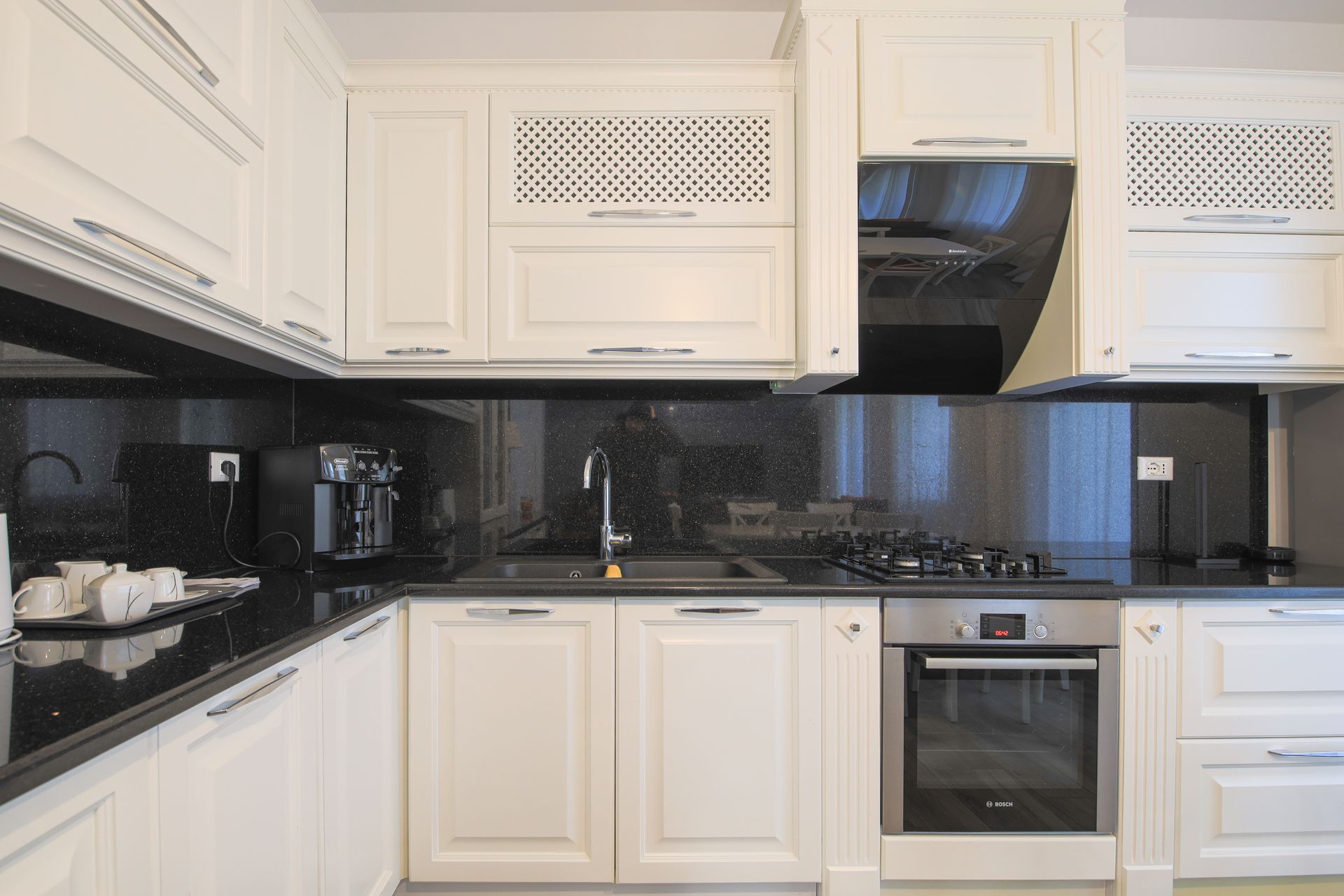 Weitere Ausstattung u.a.: Fußbodenheizung, 2 Doppelbetten (160x200 cm), Etagenbett (90x200 cm), Mikrowelle, Backofen, Kühlschrank, Geschirrspüler, Gefrierfach, Wasserkocher, Kaffeemaschine, Toaster, Ceran-Kochfeld, Esstisch, Sofa, Garderobe, Waschmaschine, Holzkohlengrill, Sonnenschirm, Sonnenliegen. Bad mit WC, Bidet, Dusche, Waschbecken.
